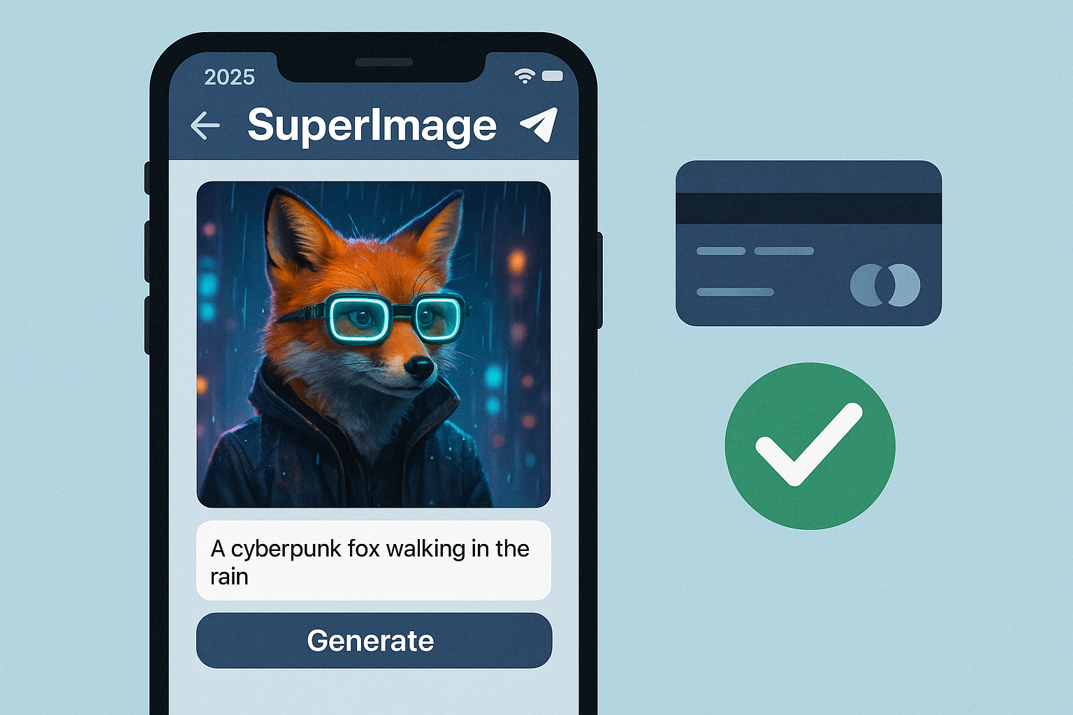 2025年に登場した「SuperImage」は、Telegram上で動作する最新のAI画像生成ツールです。アプリのインストール不要で、無料かつ即時に高品質な画像が生成できる手軽さが大きな特徴。クレジットカードの登録や煩雑な手続きもなく、誰でもすぐに試せる点が魅力です。
