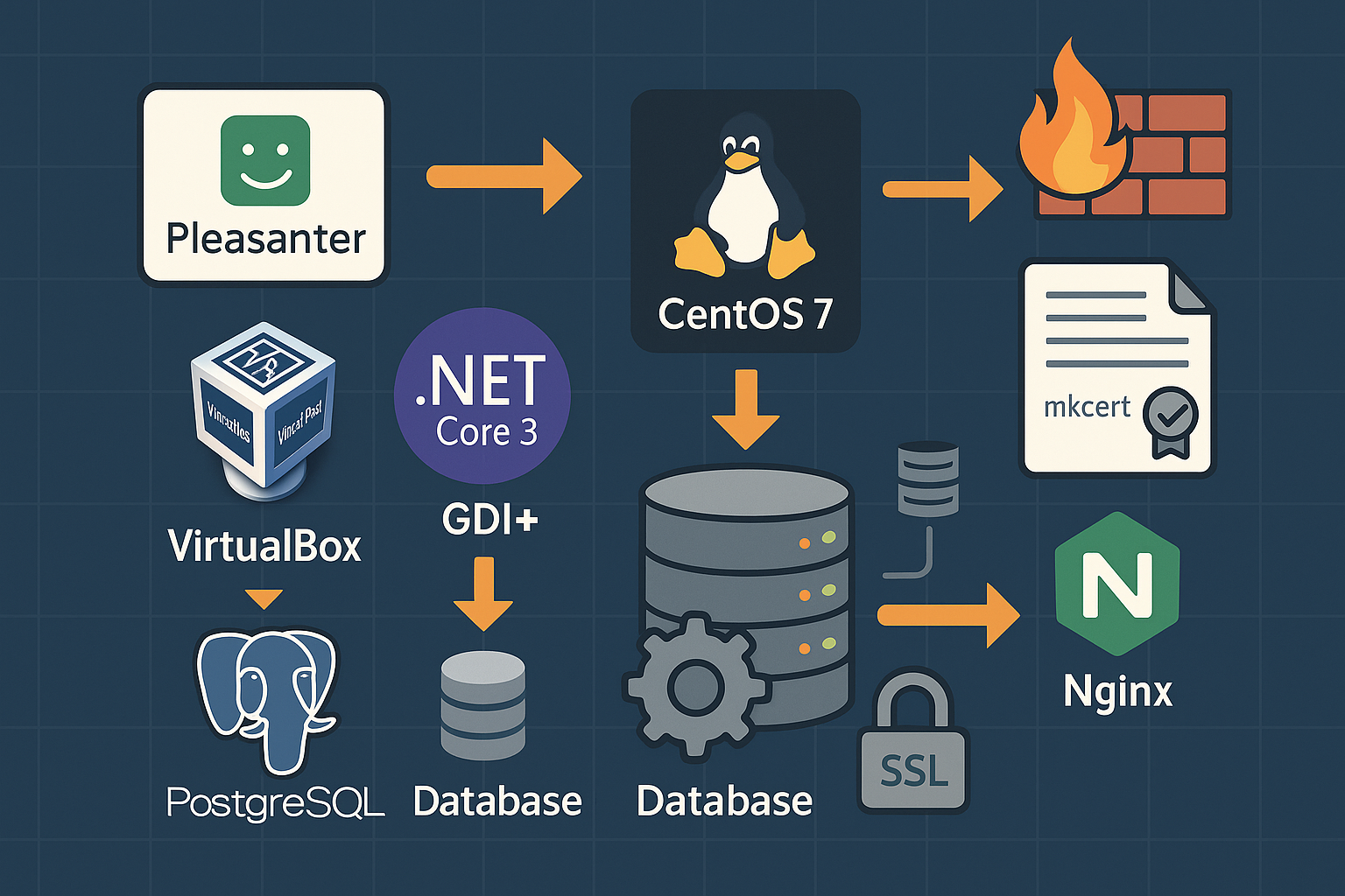 初心者にも理解しやすいように、OSのベース環境構築からVirtualBoxのセットアップ、.NetCore3.1やGDI+の導入、そしてPostgreSQLの公式リポジトリから最新バージョンを導入し、データベース初期設定を丁寧に解説しています。また、サービスの自動起動設定やファイアウォールの開放、さらには実務で必須となるHTTPS対応のためNginxによるリバースプロキシの構築もわかりやすくまとめられており、運用面でのヒントも散りばめられています。